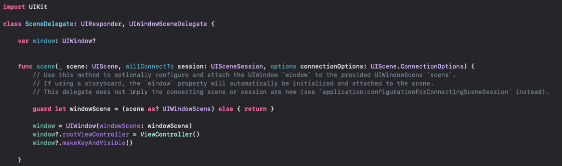 func scene(_ scene: UIScene, willConnectTo session: UISceneSession, options connectionOptions: UIScene.ConnectionOptions) {